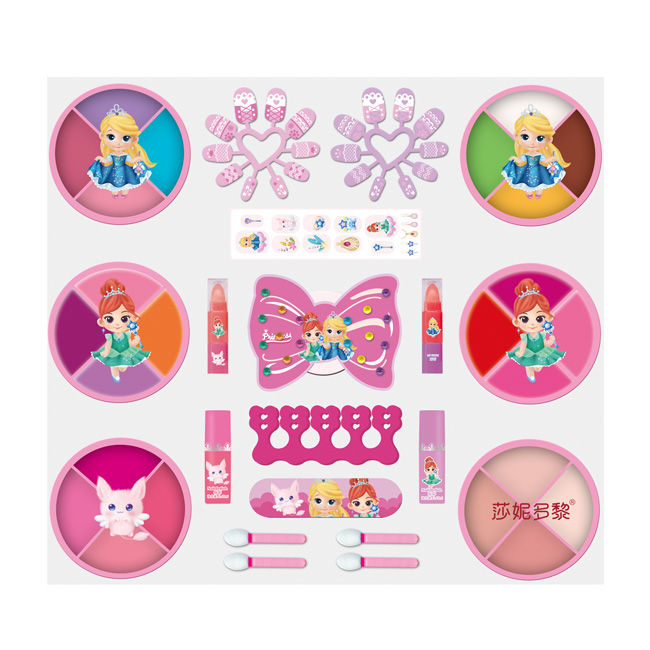 软件: 8色眼影画法膏,4色粉底膏,8色唇彩,4色粉饼膏,2只手手美甲油,4只唇膏,2只手手美甲圈,1片手手美甲贴,1只EVA 分指器,1手手美甲锉,4只化状刷,1只连接杆箱(没有灯)