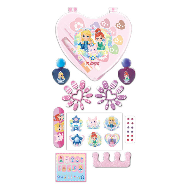 品牌: 8色唇釉膏,3色眼影膏,2只指甲盖盖盖盖油,3只唇膏,2只指甲盖盖盖盖圈,1片彩色纹身粘纸,1片辉石贴,1片指甲盖盖盖盖贴,1只EVA 分指器,1指甲盖盖盖盖锉,2片两面粘纸,2只美容刷,1只化妆台(带led灯带音乐伴奏),1只板凳