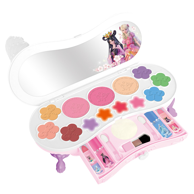 产品的: 6色哑光眼影,3色粉底,4色唇彩,2只指甲盖油,4只润唇膏,3只妆后刷,1块粉扑