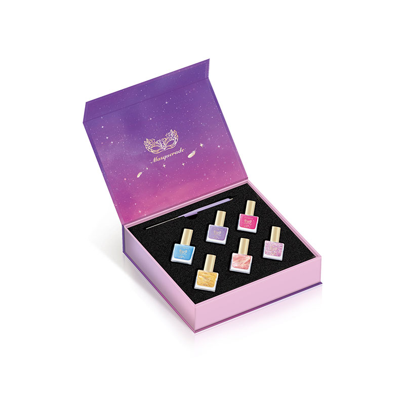 产品内容:6瓶水性指甲油,1支美甲笔,1张小号美甲贴纸,1张大号美甲贴纸,1张钻石贴纸